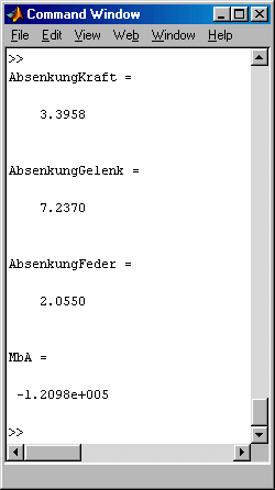 AbsenkungKraft = v(iKraft) % Ausgabe in das Command window: AbsenkungGelenk = v(iGelenk) % Zahlenwerte der Verschiebungen ...