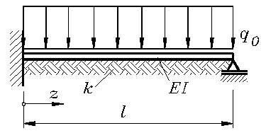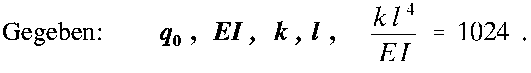 Für den skizzierten elastisch gebetteten Träger sind der Verlauf der Biegelinie und der Biegemomentenverlauf zu bestimmen.