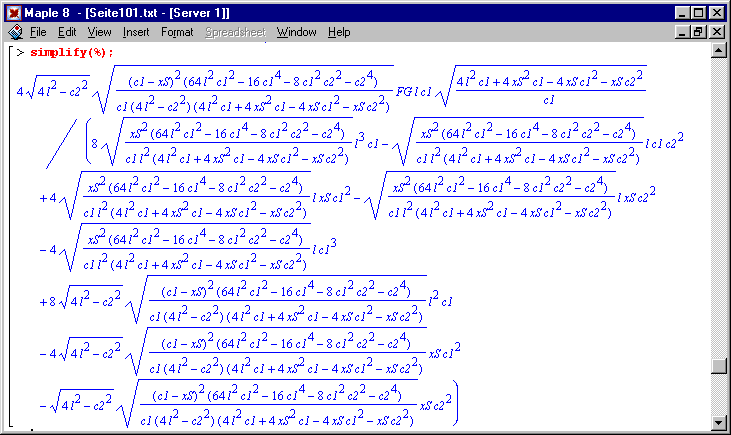Man beachte, dass nicht etwa Maple hier an die Grenze seiner Leistungsfähigkeit stößt. Es ist der Mensch, der Ausdrücke dieser Art nicht mehr erfassen kann. Da hilft auch ...