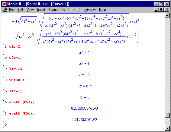 Zwischenergebnisse (nebenstehender Ausschnitt aus dem Maple Worksheet).