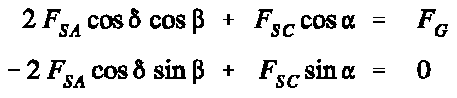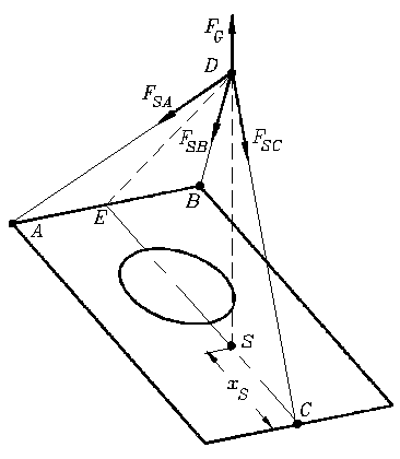 ... Gleichgewichtsbedingungen (Bestimmungsgleichungen für die Seilkräfte FSAund FSC):