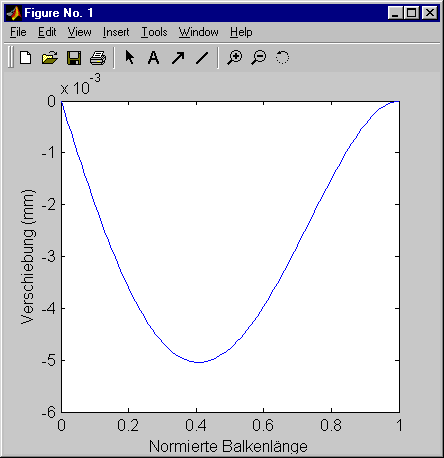 Die mit plot ... eingeleitete Zeile am Ende führt zur graphischen Ausgabe der Biegelinie (nebenstehende Abbildung).