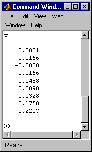 % Gleichungssystem des Einstiegsbeispiels clear all A = [0 0 1 0 0 0 0 0 0 ; 0 -1 0 1 0 0 0 0 0 ; 1 -4 6 -4 1 0 0 0 0 ; 0 1 -4 6 -4 1 0 0 0 ; 0 0 1 -4 6 -4 1 0 0 ; 0 0 0 1 -4 6 -4 1 0 ; 0 0 0 0 1 -4 6 -4 1 ; 0 0 0 0 -1 2 0 -2 1 ; 0 0 0 0 0 1 -2 1 0 ] ; b = [ 0 ; 0 ; 1/256 ; 1/256 ; 1/256 ; 1/256 ; 1/256 ; 0 ; 0 ] ; v = A\b |