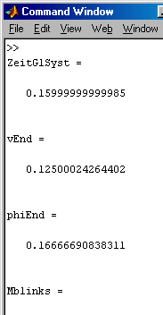 Nach dem Abarbeiten des links zu sehenden Scripts S261_1.m findet man das Ergebnis im "Command Window" (Bild rechts).