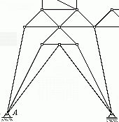 Schließlich bleibt mit dem durch die 5 Anschlusskräfte belasteten Portal ein für die Berechnung der Stabkräfte höchst unangenehmes Gebilde übrig, obwohl auch die Lagerreaktionen bekannt sind. An keinem Knoten stoßen weniger als 3 Stäbe mit noch unbekannten Stabkräften zusammen, und es lässt sich kein Ritter-Schnitt so legen, dass die geschnittenen Stabkräfte berechnet werden könnten.