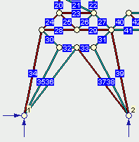 Wenn man nach (möglicherweise aufwendigen) Kontrollen der Kontrollrechnung keinen Fehler findet, wird man die Originalrechnung noch einmal überprüfen, und da findet sich die (wirklich nicht seltene) Fehlerursache: Die Rechnung ist zwar richtig, aber es wurde nicht das Modell der Aufgabenstellung behandelt. Die beiden Stäbe 30 und 31 sind nicht so in das Modell eingebunden, wie es die Aufgabenstellung vorsieht: