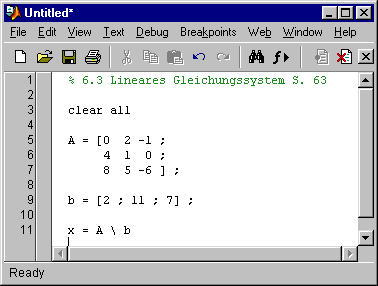 Variante c: Bei diesem System muss Matlab passen, denn es ist nicht für die symbolische Rechnung vorgesehen: