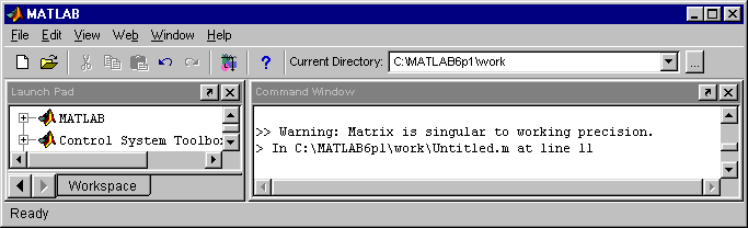 Variante b: Dieses System lässt sich mit Matlab (natürlich!) nicht lösen. Die Koeffizientenmatrix ist singulär:
