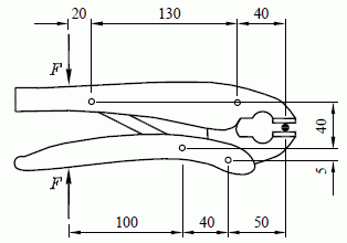 Beispiel 2 zur Ursache "Inkorrektes Gleichungssystem": Für die nebenstehend zu sehende Zange ist das äußere Gleichgewicht schon per Aufgabenstellung erfüllt.