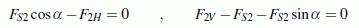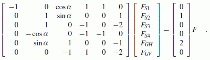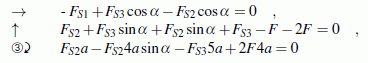 berechnet man unter Verwendung des gegebenen Werts für den Winkel α die Kräfte in den Seilen 1 bis 3: