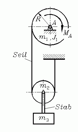 hebt die Massen m2 (zylindrische Rolle)