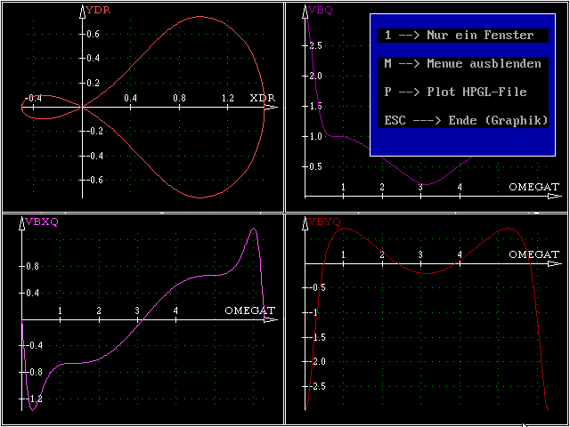 berechnet werden. Das “J” in der Spalte “2” veranlasst die Ausgabe der Graphik VBQ(OMEGAT) in Graphik-Fenster 2 (dafür wurde aus dem “J” in Spalte “1” ein “N” gemacht, um diese Funktion nicht auch im Fenster