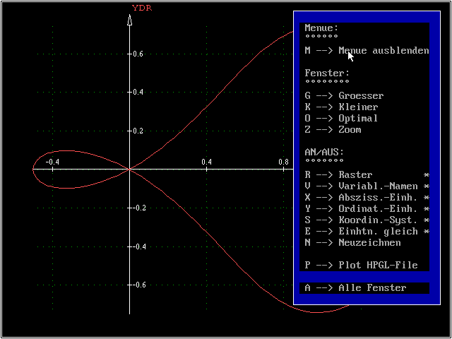 - ... wird durch das “J” in der Zeile “YDR” diese Funktion im Graphik-Fenster 1 in Ahängigkeit von “XDR” gezeichnet (wird durch das “A” in der Zeile “XDR”