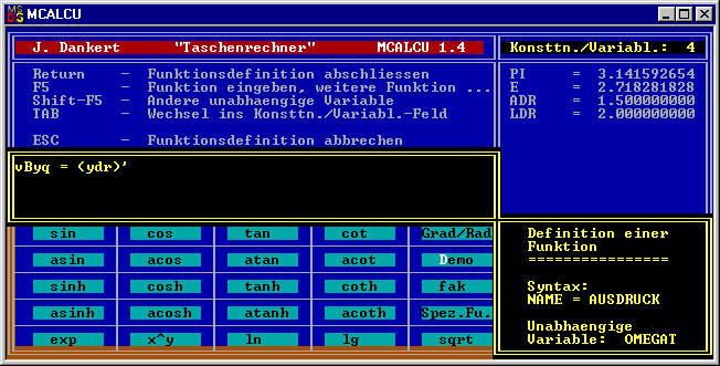 Der nachfolgende Bildschirm-Schnappschuss zeigt den Bildschirm unmittelbar vor dem Betätigen der <F5>-Taste für die Definition der Funktion ydr: