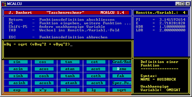 Der nachfolgende Bildschirm-Schnappschuss zeigt den Bildschirm unmittelbar vor dem Betätigen der <F5>-Taste für die Definition der Funktion vByq: