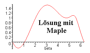 beschrieben wird. Die Extremwerte dieser Funktion kennzeichnen die Gleichgewichtslagen des Systems, wobei Minima stabile Gleichgewichtslagen und Maxima instabile Gleichgewichtslagen anzeigen (ausgewertet werden muss nur die geschweifte Klammer). Benötigt wird also ein Programm, das die Minima und Maxima einer solchen Funktion in einem vozugebenden Intervall (hier: 0° ≤ β ≤ 360°) ermitteln kann.