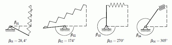 Es gibt also 4 mögliche Gleichgewichtslagen, von denen die beiden, die zu relativen Minima der Funktion U(β) gehören, stabil sind. Die folgende Skizze zeigt die Gleichgewichtslagen: