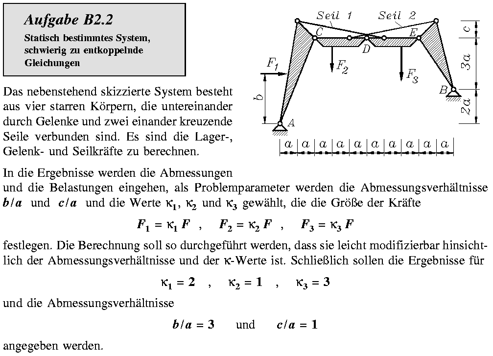 Einfluss der einzelnen Kräfte auf die Ergebnisse erkennbar bleiben. Deshalb wird empfohlen, das Gleichungssystem gleichzeitig für mehrere rechte Seiten zu lösen, z. B. so: In den ersten drei Spalten