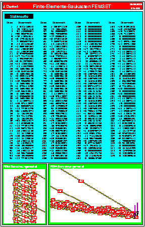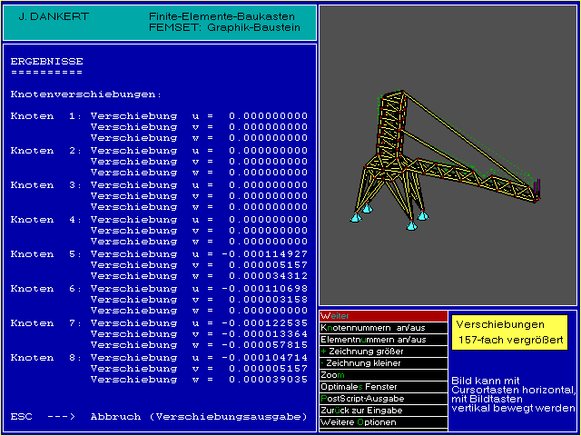 Nach Wahl von “FEM-Rechnung starten” werden die Verformungen berechnet und nach Drücken einer beliebigen Taste als Liste und Graphik angezeigt: