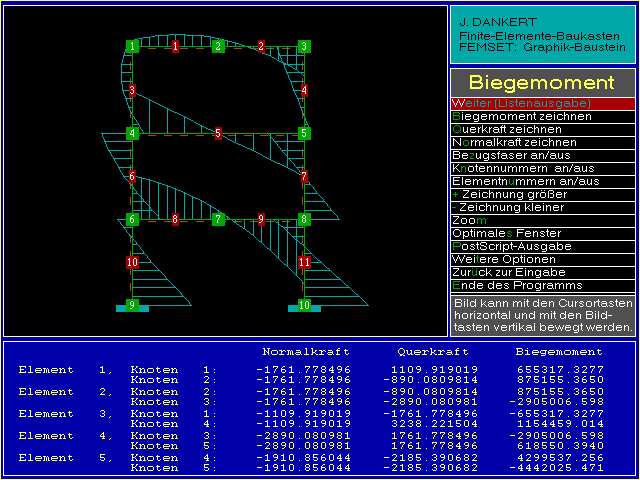 Nach zweimaliger Wahl von “Weiter” erscheint die Liste der Schnittgrößen mit der graphischen Darstellung der Biegemomente: