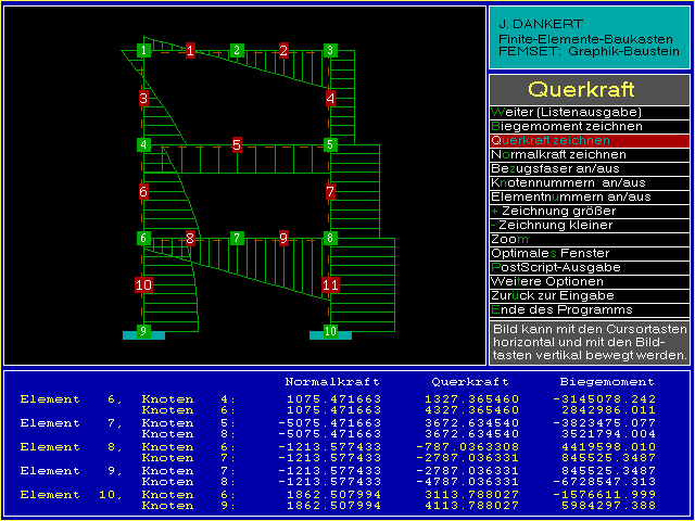 Nach Wahl von “Weiter (Listenausgabe)” und “Querkraft zeichnen” erscheint folgende Darstellung: