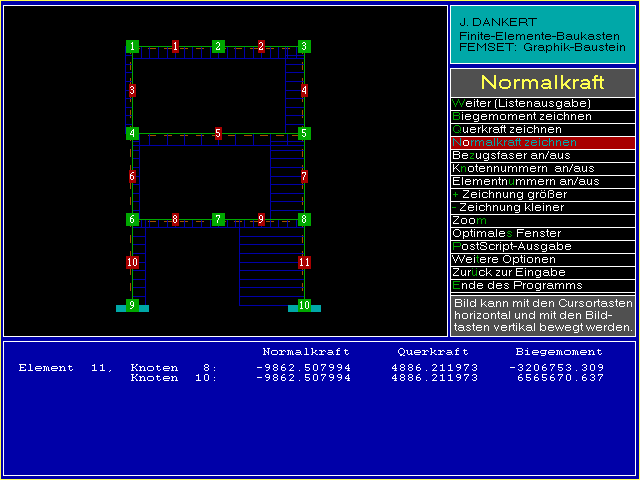 Nach Wahl von “Weiter (Listenausgabe)” und “Normalkraft zeichnen” erscheint folgende Darstellung: