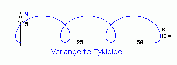 Bahnkurve der verlängerten Zykloide: